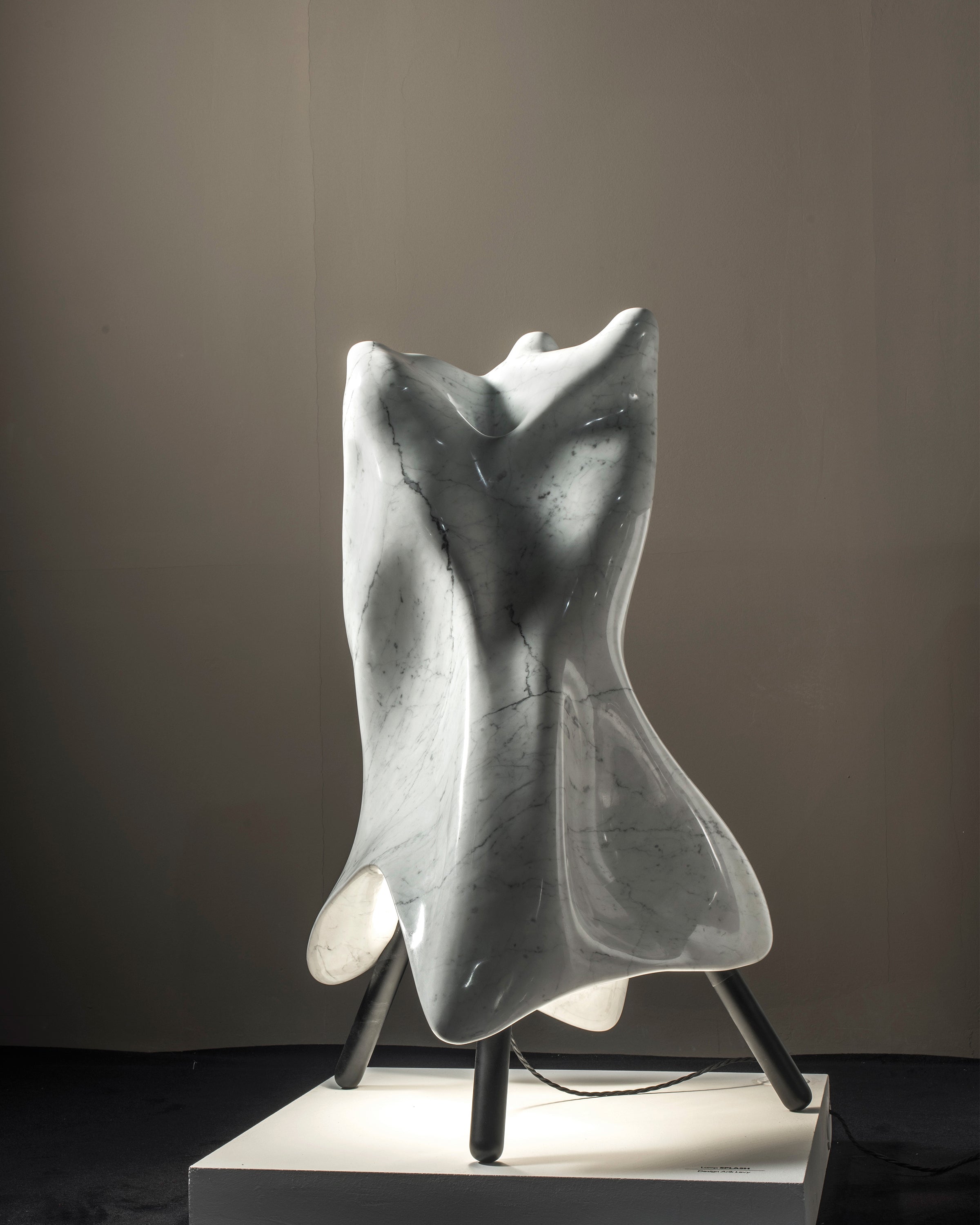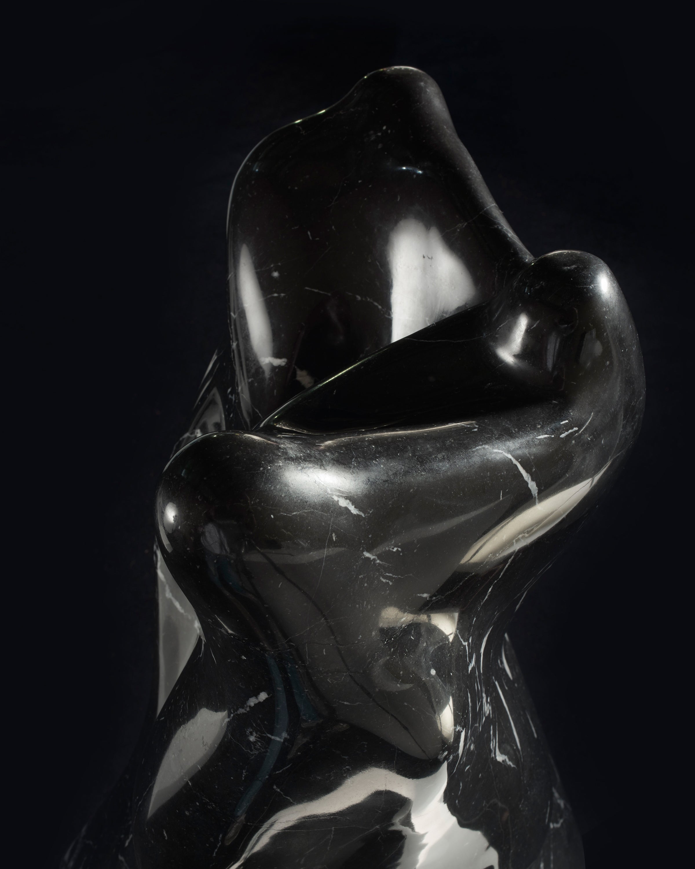 Nero Marquina Polished - black stainless steel legs 59 x 103h cm Bianco Carrara Polished - black stainless steel legs 59 x 103h cm
